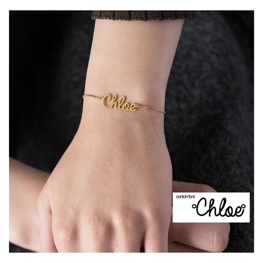 Jual Gelang Ukir Nama Custum Lapis Emas24k Anti Karat Aksesoris Wanita Titanium Chloe Shopee Indonesia
