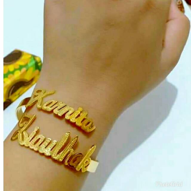 Jual Gelang Nama Kombinasi Ukir Nama Custom Lapis Emas Model Kombinasi Gelang Banggel Indonesia Shopee Indonesia